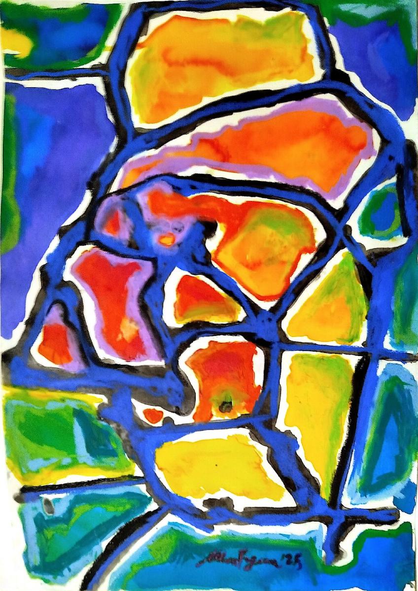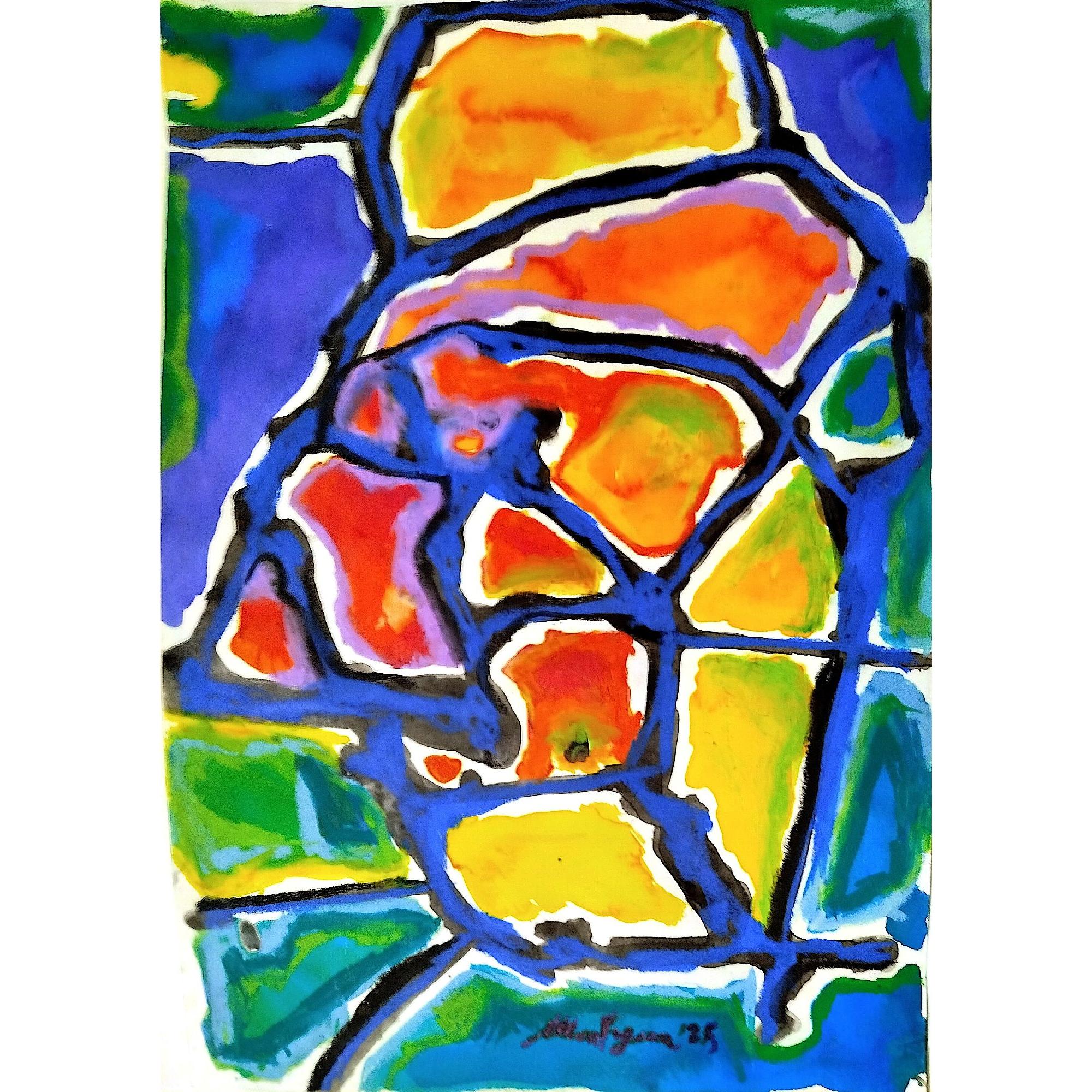 In questa opera ho voluto catturare l'incontro vibrante tra emozioni e colori, usando pastelli a olio e inchiostro per creare una danza astratta di forme e tonalità accese. Ogni linea nera definisce i confini di un’energia viva, come un abbraccio che unisce diversità in un’armonia dinamica. Porterà ovunque una carica di vitalità e allegria, illuminando ogni spazio con profondità e movimento.