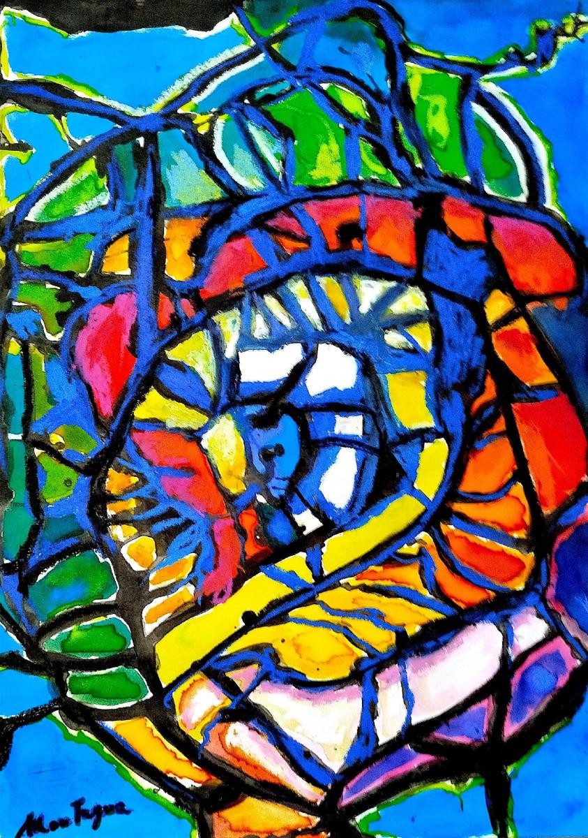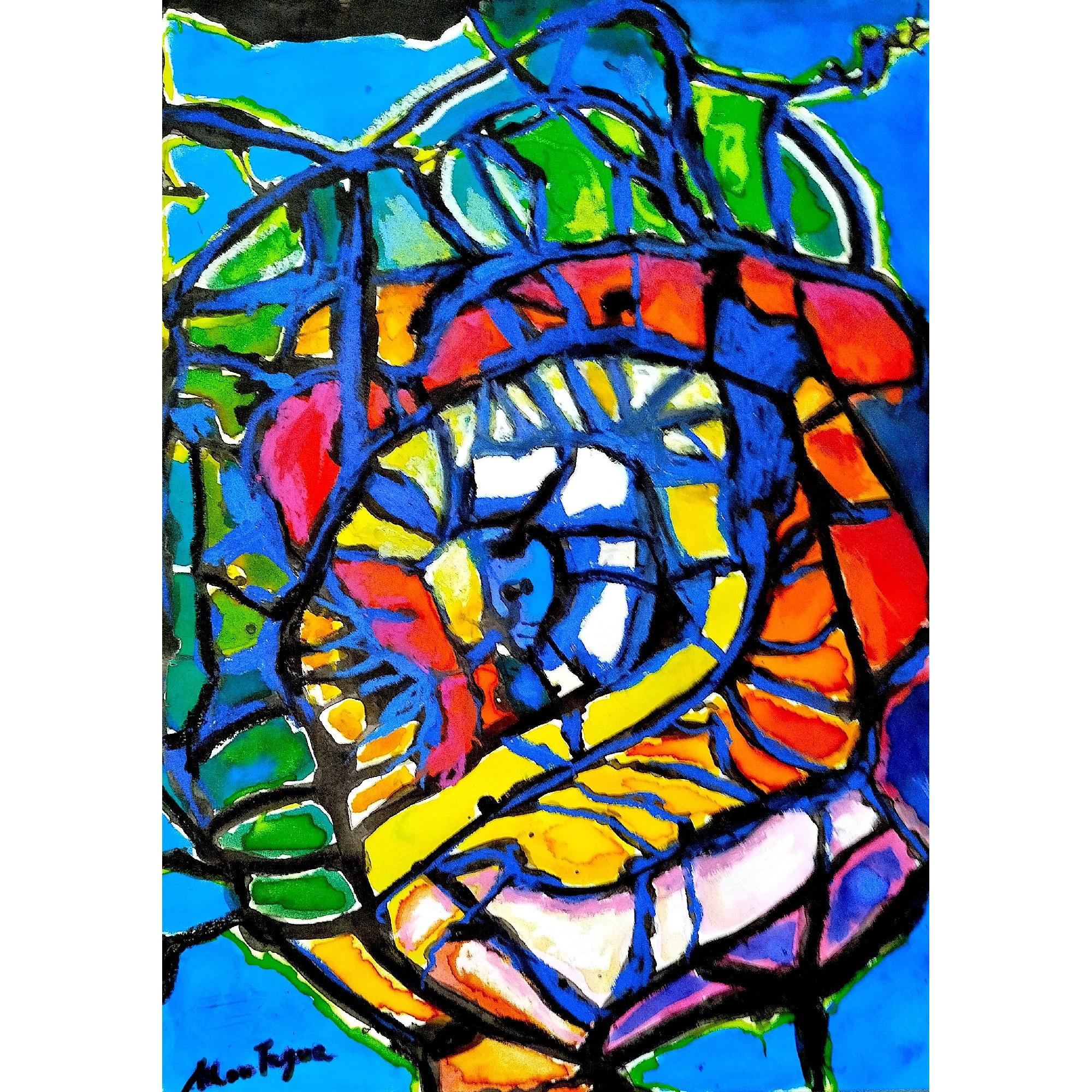 In questo lavoro ho voluto catturare l’energia vibrante dei colori che si intrecciano tra loro generando un forte impatto emozionale. Attraverso il contrasto tra l’intensità dell’inchiostro di china e la morbidezza pastosa degli oli pastello, ho creato un gioco di linee e colori che sprigiona movimento e profondità. Questo pezzo porta con sé un’esplosione di vitalità e un invito a immergersi nella meraviglia del caos armonioso.